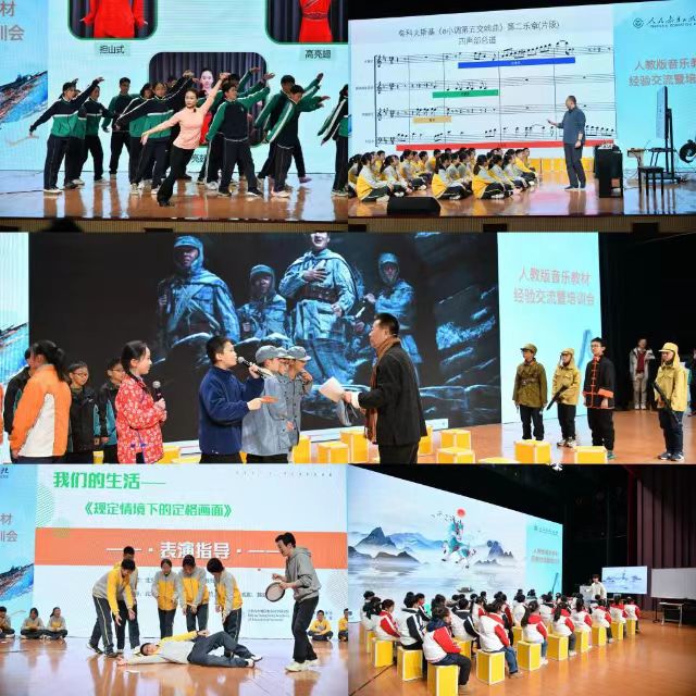 本次活动还安排了内容丰富的音乐公司产品活动,包括课程展示、校际交流、艺术普及、学术研讨和演出等。12月17日,扬州市人民政府副市长刘流、人民教育出版社总编辑王日春等人致辞,原中央太阳成集团tyc151cc副经理周海宏教授与人民教育出版社音乐编辑室主任张莹莹分别就音乐、戏剧和舞蹈教材作了报告。12月18日至19日,培训会向全国教研员与一线教师展示了人民教育出版社第十二套义务教育教材的课程内容和理念,涵盖小学、初中和高中三个学段的音乐、戏剧和舞蹈三个学科。来自北京、天津、河北、河南、安徽、江西、黑龙江、贵州、宁夏等地的教研团队与人民教育出版社音乐编辑室共同呈现了22节公开课与说课展示,以更直观的方式展示了新教材课程的创新性与多样性。