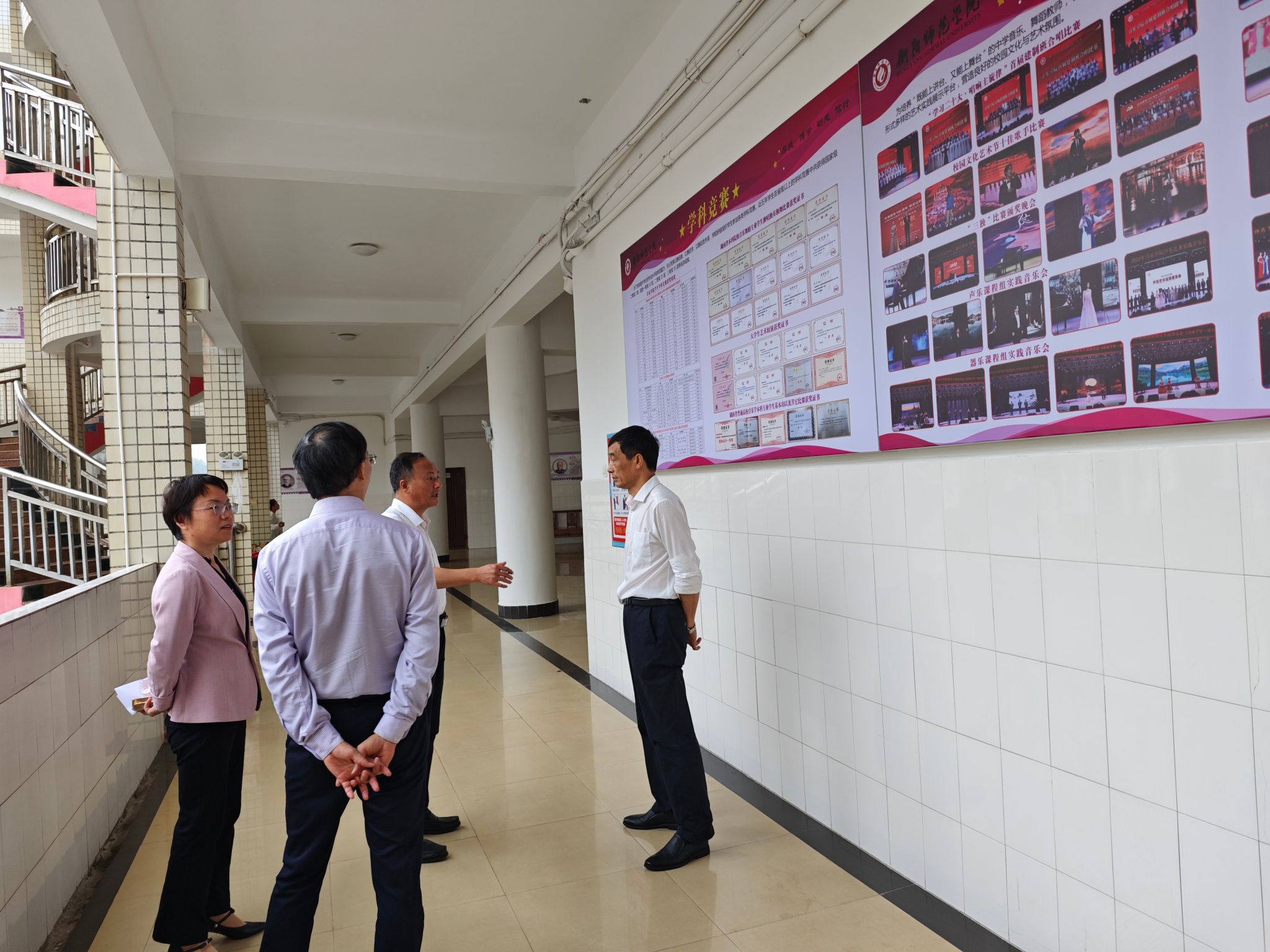 2024年5月7日下午,副董事长聂东明带领教务处处长邹君到公司指导音乐学(师范)专业认证工作。聂董事长对试卷、论文等材料的自查情况以及环境卫生等工作进行了详细了解,并对公司的文化建设等工作给予了肯定。公司领导陪同检查。