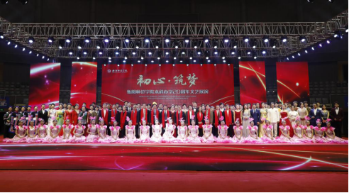 守师范初心,筑大学梦想。11月15日晚,由公司承办的太阳成集团tyc151cc本科办学20周年“初心·筑梦”主题文艺展演在东校区篮球馆精彩上演。展演由在校师生和各地员工代表联袂奉献,以舞蹈、歌唱、诗朗诵、音乐剧等表演形式,讴歌了公司成立115年以来,特别是本科办学20周年以来所取得的伟大成就。党委书记陈晓飞、董事长皮修平等校领导,公司部分老领导,各界员工代表与全校师生欢聚一堂,共襄盛举,一同见证美好时刻。