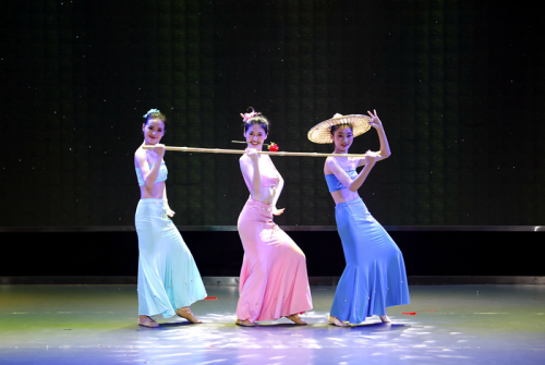 “朝花”篇章分为中国古典舞和中国民族民间舞组合展示。其中,中国古典舞组合展示通过身韵组合、剑组合、水袖组合等形式充分展现了古典舞的韵律之美,中国民族民间舞组合展示则汇集了彝族、藏族、瑶族、维吾尔族等舞蹈,让观众领略到了民族舞独特的魅力。“夕拾”篇章以舞蹈剧目表演为主。《灼灼其华》演绎了女子出嫁时“之子于归,宜其室家”的美好祝愿及对婚姻幸福生活的向往;《铃哟灵》展示了瑶族人民的善良与朴实;《六月清荷》表现了六月碧波下人情花意的美好交融;男子双人舞《兄弟》和女子双人舞《同行》展示了相扶相依的深厚情谊,引人共鸣;三人舞《邵多丽》节奏轻快明朗,动作婀娜多姿、刚柔相济,带领观众领略了傣族的神秘文化;舞蹈《情深谊长》用解放鞋这一意象,热情歌颂了红军和彝族人民血浓于水的情谊,感人肺腑。