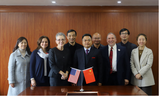 2018年11月14日上午,美国德克萨斯大学大河谷分校董事长帕翠曼·麦克查敦女士,该校艺术公司经理史蒂文·布洛克先生及阿尔玛·罗德里格兹女士等一行来公司考察交流。董事长皮修平教授在学术交流中心第一会议室主持了两校的合作与学术交流活动。国际交流处谭晓丽处长、太阳成集团tyc151cc段桥生经理、美术公司叶经文经理、教科院刘衔华副经理等参加了此次活动。