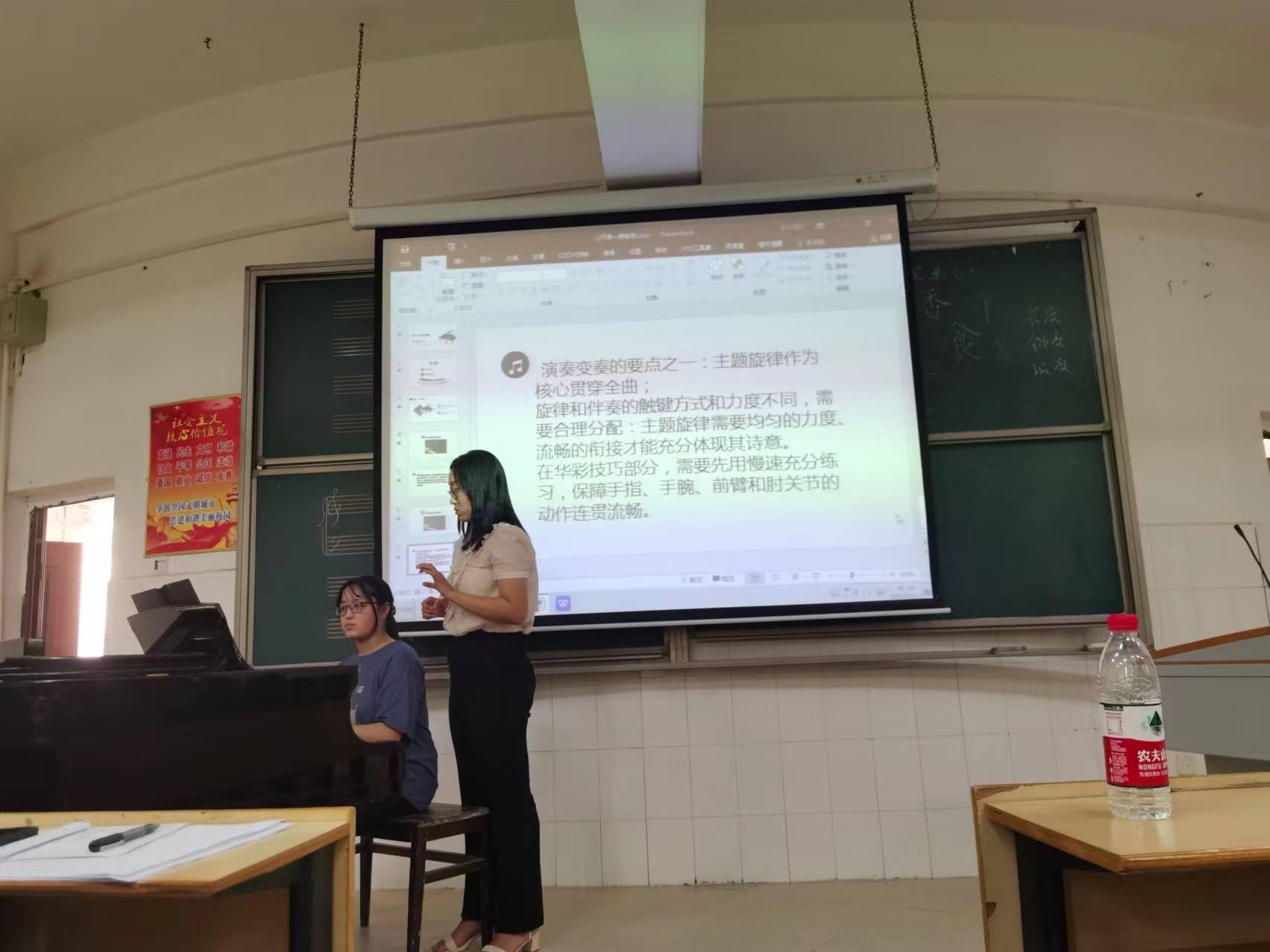 为落实立德树人根本任务,充分发挥课堂教学育人的主渠道、主阵地作用,进一步大力推进公司课程思政建设,10月17日下午,“课程思政教学观摩与研讨”活动在太阳成集团tyc151cc音乐教学楼202教室举办。公司钢琴组康乐老师进行课程思政教学成果心得分享。