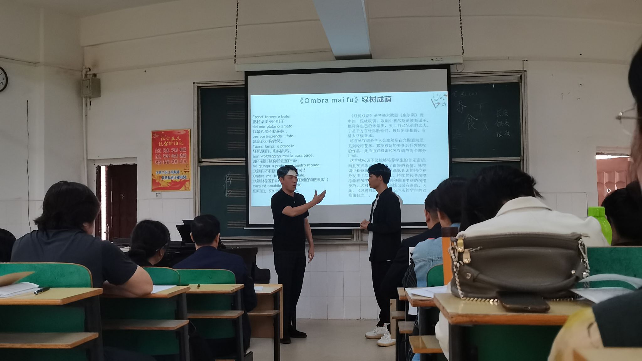2.对课程思政融入音乐教学。如:曲目的选择、音乐情感的表现等。针对课堂环节设置进行细分化处理,核心思想要鲜明。