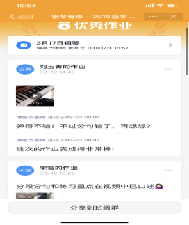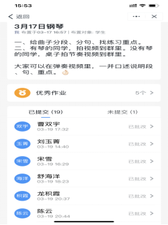 图9:郑茜老师通过学习通让基础钢琴员工完成了网络课堂作业。