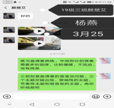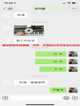 图3:曾强老师通过微信与南岳公司专业生进行钢琴作品《梦中的婚礼》的指导。