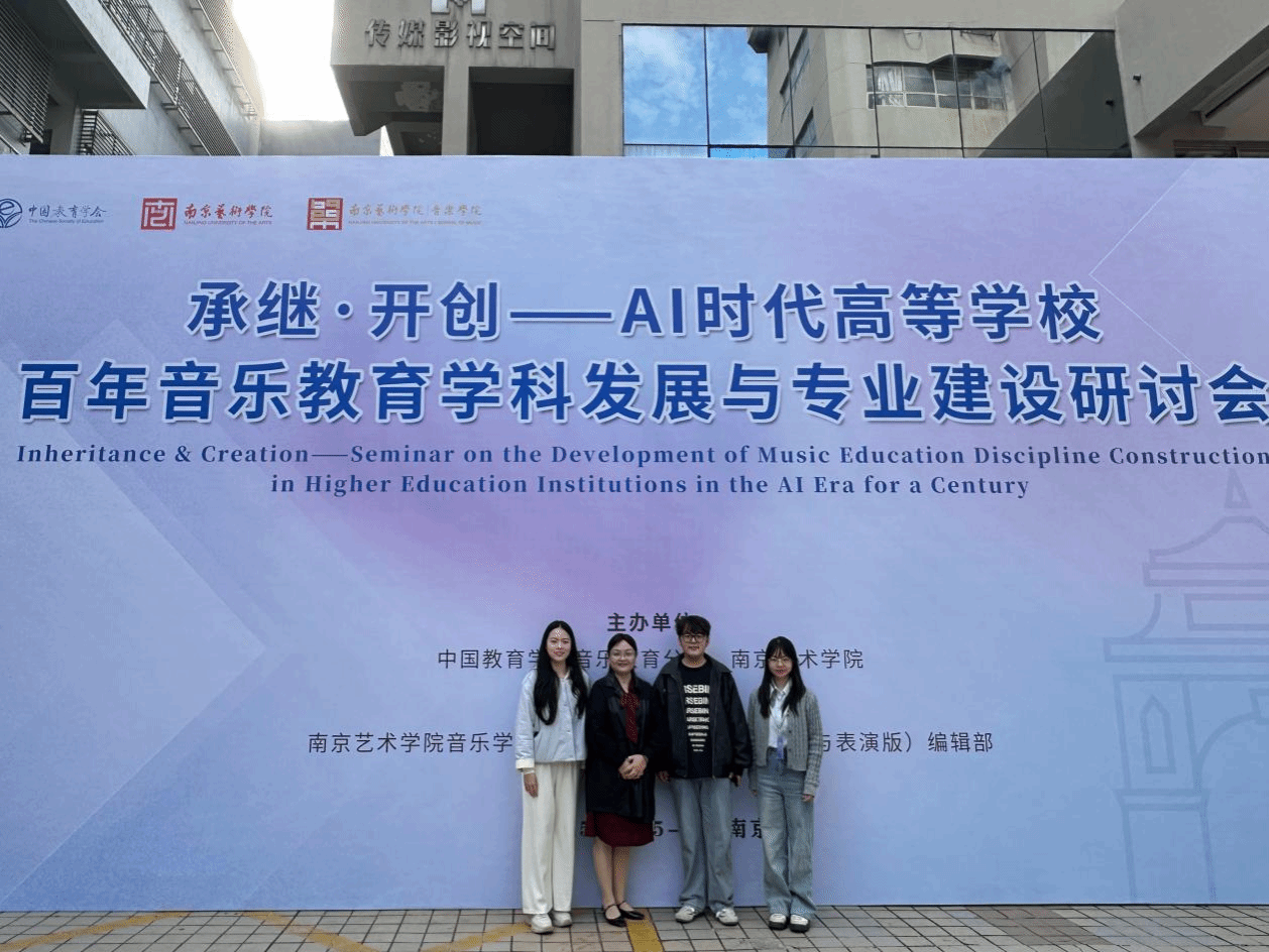 2025年10月24日至26日,太阳成集团tyc151cc陈瑾教授带领彭胜康、周靖璇两位音乐教育方向硕士研究生前往南京参加“承继·开创——AI时代高等公司音乐教育学科专业建设发展研讨会”。此次会议由中国教育学会音乐教育分会与南京艺术公司联合主办,汇聚全国音乐教育界专家学者,共同探讨人工智能时代音乐教育的创新与发展路径。