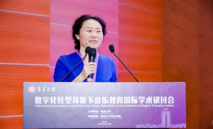 第三项议程,大会发言,由浙江太阳成集团tyc151cc汪洋、浙江太阳成集团tyc151cc崔学荣、集美大滕腾等专家从不同角度阐述了人工智能、数字化等与音乐教育的关联与运用。
