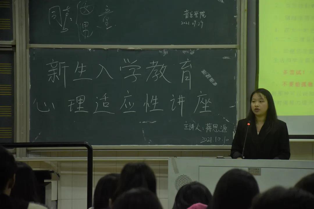 为进一步加强公司员工管理和心理健康教育工作,10月10日晚8点,公司在音乐楼301教室开展了2021级新生心理适应性讲座。本次讲座由心理专干蒋思源老师主讲,全体2021级新生参与聆听。