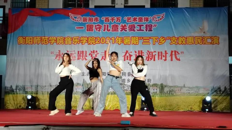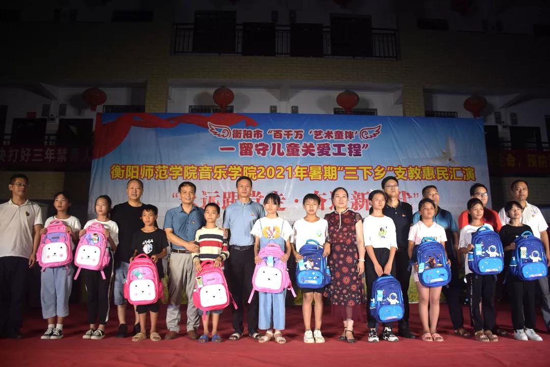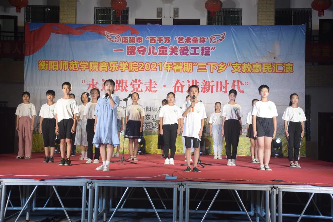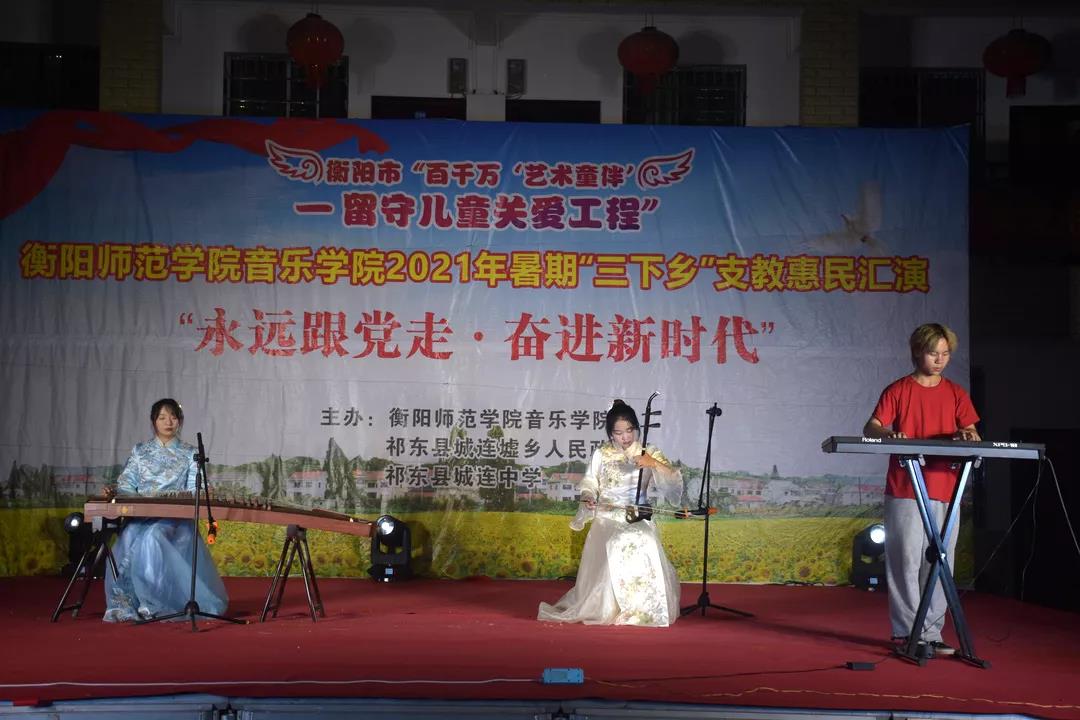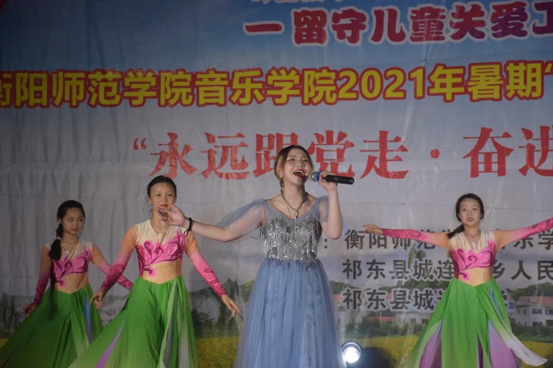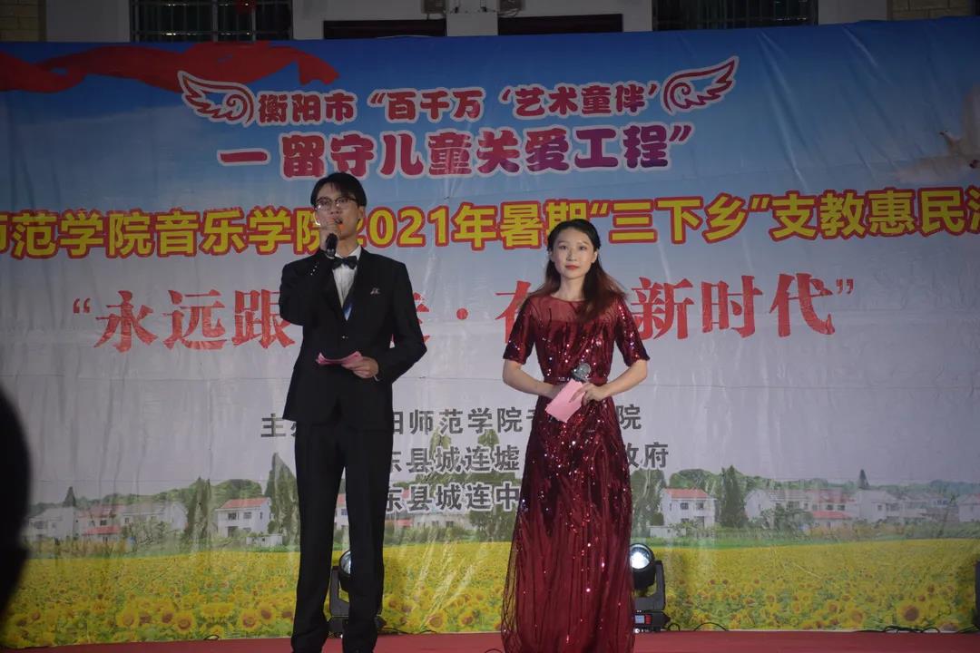 7月12日晚,太阳成集团tyc151cc三下乡支教惠民汇演于城连墟乡隆重举行。莅临本场汇演的领导嘉宾有衡阳师院音乐公司党总支书记朱志红、党总支副书记陈雅斐。祁东县委宣传部一级主任科员周建桥、祁东县城连墟乡党委书记胡文波、祁东县城连墟乡乡长罗映、祁东县教育局青少年员工校外活动中心负责人周斐、祁东县城连墟乡党委副书记陈志红、祁东县城连墟乡人大主席周盛红 、祁东县城连墟乡教管办主任李仁秋。