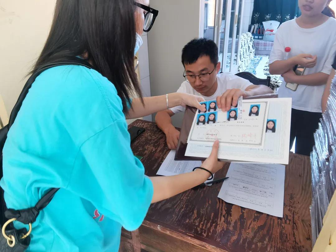 毕业证及学位证的发放工作在307教学办进行,工作人员秉着严谨的态度,认真核对毕业生的姓名,避免冒领、错领的现象发生,最后严格规范地将毕业证及学位证交给相应的毕业生。