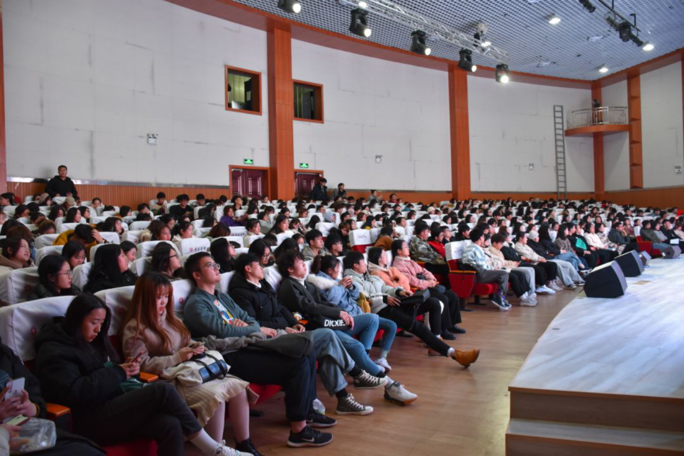 在全体员工大会结束后,所有团学干部在音乐厅召开团学干部例会,会议由团副刘睿主持。刘睿表示,为促进团学会各部门间更好的协调工作,增进不同部门之间员工干部的关系,准备在本周日组织团学干部开展一次素质拓展活动,并就活动的要求和注意事项进行了说明和交代。