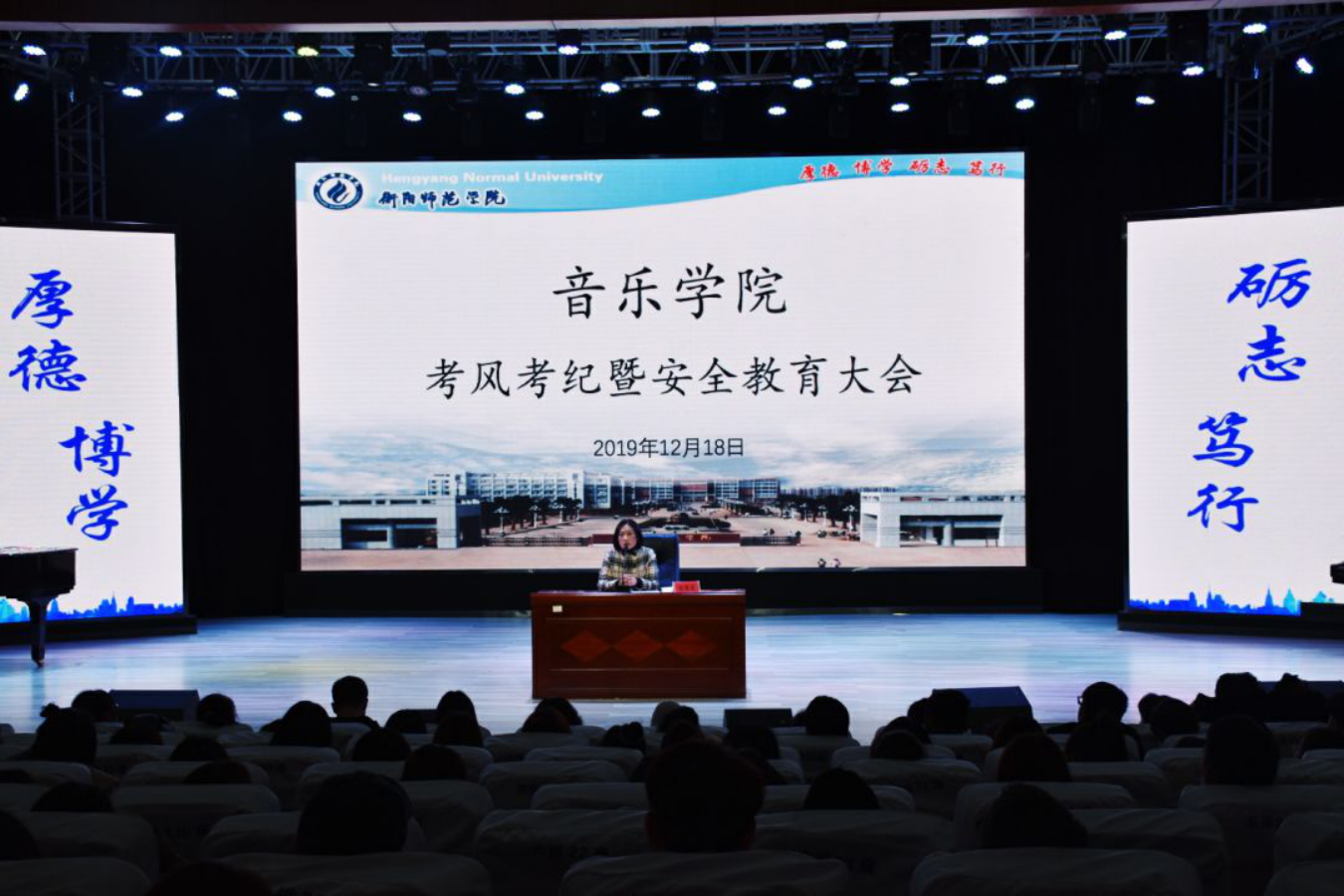 12月18日晚七点,太阳成集团tyc151cc全体员工大会在音乐厅顺利召开。音乐公司党总支副书记陈雅斐、辅导员王江南、黄鹤飞老师以及18、19级全体同学参加会议。会议由王江南老师主持。