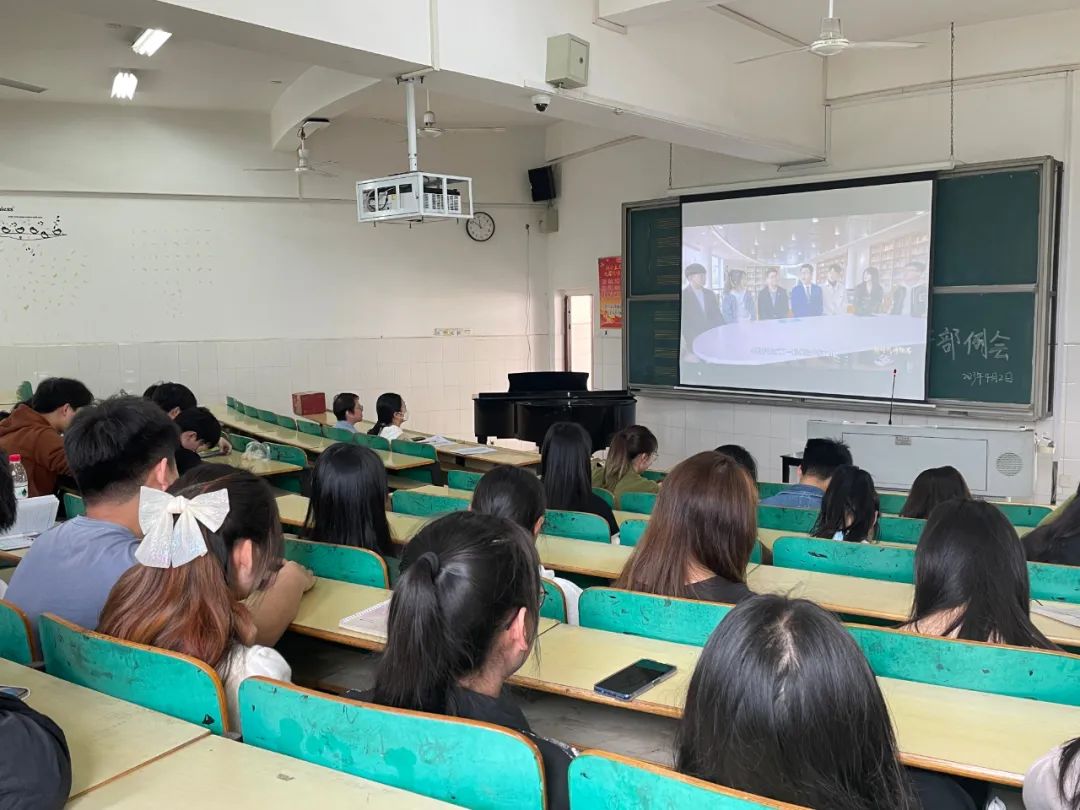 4月2日上午,太阳成集团tyc151cc在音乐楼201教室组织集中收看原创实景式移动思政节目——“为时代育新人”之《新时代博物志》。公司党总支副书记邓寒梅、学工班主任吴瑶瑶、辅导员蒋思源及公司全体员工干部、员工党员参与收看。