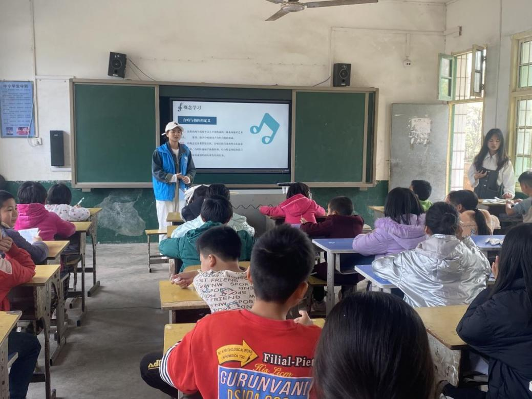 教室里跳动的音符、欢快的节拍和同学们的欢声笑语交织成了一条条美妙的旋律,为这个春天增添了一抹亮色。同学们的眼睛好似一颗颗闪亮的星星,可爱又迷人。她们将美妙的歌声传向远方,用音乐传递了爱与善良。