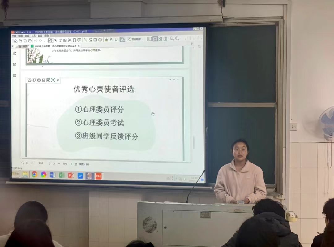 2月28日中午,公司于音乐楼203教室召开2025年上半年第一次心理委员会议,参会人员有心理健康部全体成员2022级-2024级各班心理委员,本次会议由心理健康部部长唐佳乐主持。