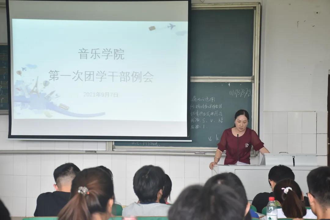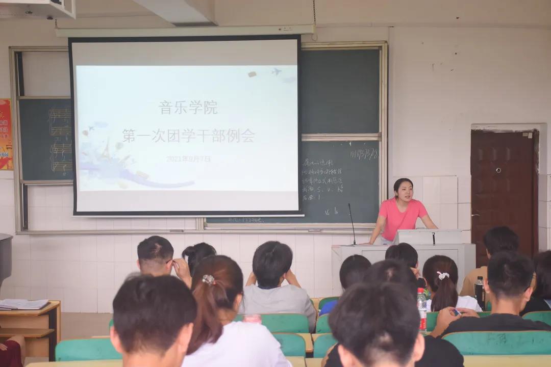 9月7日中午,2021年下半年第一次团学干部例会于音乐楼202教室顺利召开。参加本次会议的有音乐公司党总支副书记陈雅斐,分团委书记刘颖,辅导员黄鹤飞、蒋思源,分团委员工会全体成员,各班班长及团支书。本次会议由分团委书记刘颖主持。