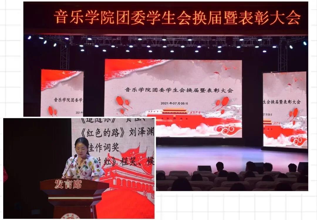 7月5日晚,2021年团委员工会换届暨表彰大会于音乐厅顺利召开。参加本次大会的有音乐公司党总支副书记陈雅斐,分团委书记刘颖,辅导员黄鹤飞老师,20、21届团委员工会全体成员以及18、19、20级班委。