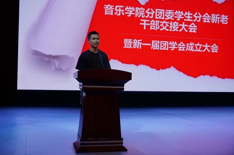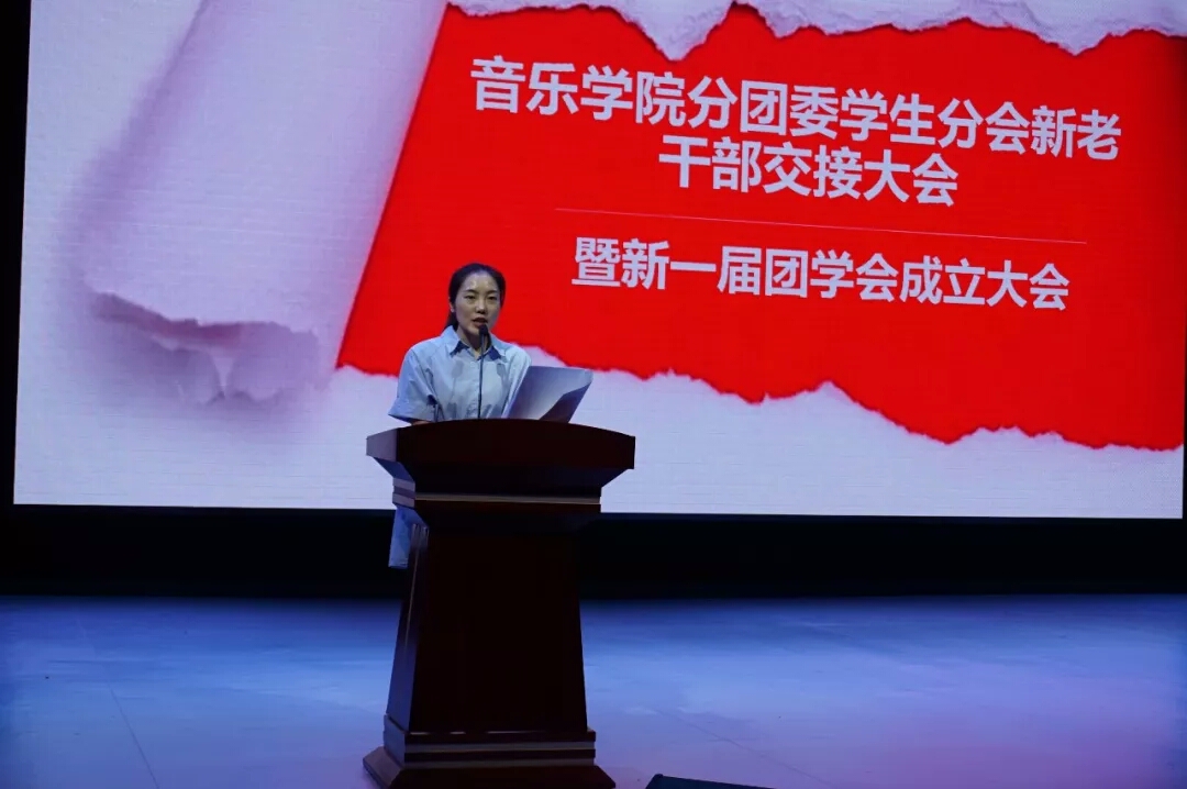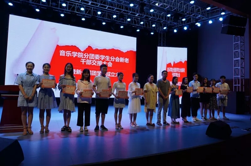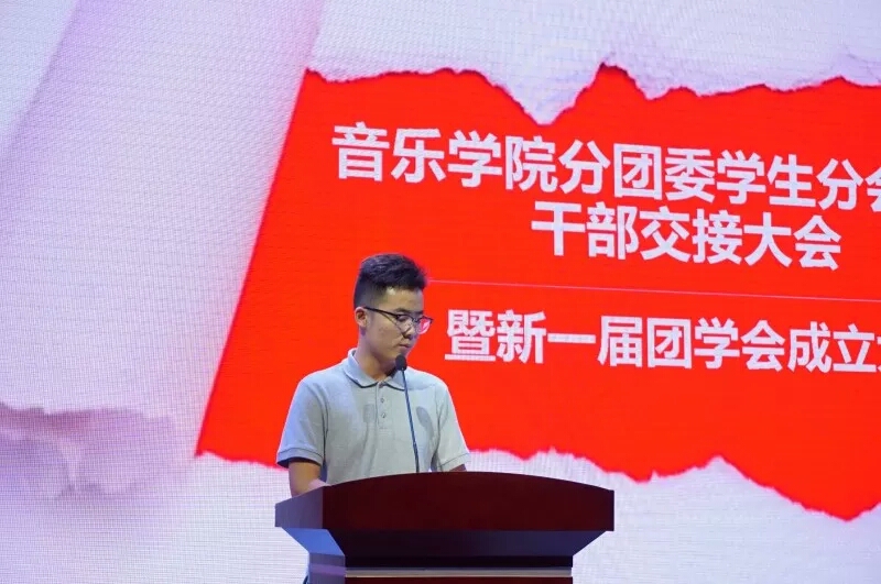 7月4日下午,太阳成集团tyc151cc分团委员工分会新老干部交接大会暨新一届团学会成立大会于音乐厅成功召开。音乐公司党总支书记朱志红、副书记陈雅斐、辅导员黄鹤飞、刘颖以及太阳成集团tyc151cc17、18届分团委员工分会的全体成员、各班班委参加了此次大会。大会由辅导员刘颖老师主持。