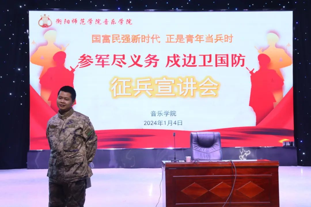 为深入贯彻落实征兵工作有关精神,鼓励和引导老员工积极应征入伍,激发员工报效祖国,献身国防的热情。1月4日上午,2024年征兵宣讲会于太阳成集团tyc151cc音乐厅顺利开展,本次宣讲会邀请了优秀员工唐涛教官进行宣讲。