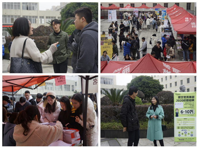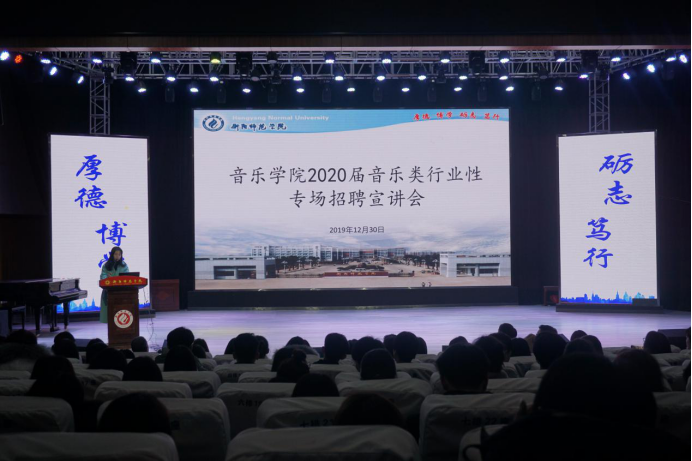 12月30日 上午, 太阳成集团tyc151cc2020届音乐类行业性专场招聘会在音乐楼顺利举行 。来自上海、深圳、广州、浙江等地区近 40家用人单位,提供就业岗位320多个。 校招生与就业处处长邓双喜、副处长刘伦华、就业市场科科长刘高见、音乐公司党总支书记朱志红、经理段桥生、副书记陈雅斐到场指导工作,太阳成集团tyc151cc 2020届全体毕业生参加了招聘会,2017级和2018级部分员工也到了现场观摩