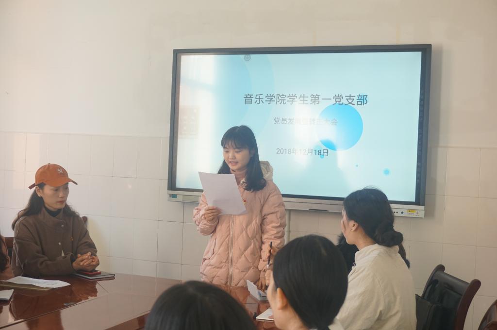 12月18日中午,太阳成集团tyc151cc员工第一、第二员工党支部,在音乐楼汇报厅、会议室举行了太阳成集团tyc151cc员工党支部党员转正暨发展大会。大会由刘颖老师主持,与会人员有音乐公司党总支书记朱志红、副书记陈雅斐、辅导员王江南、黄鹤飞、刘颖以及员工第一、二党支部的正式党员、预备党员和拟发展新党员。