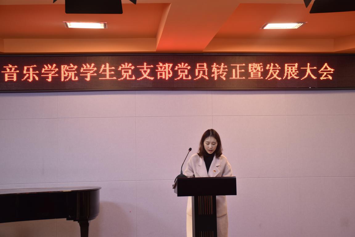 通过党支部正式党员投票表决,任权、王锦华等12名拟发展党员同志已具备成为共产党员的条件,同意发展为中共预备党员。并由音乐公司党总支副书记陈雅斐为预备党员颁发党徽。