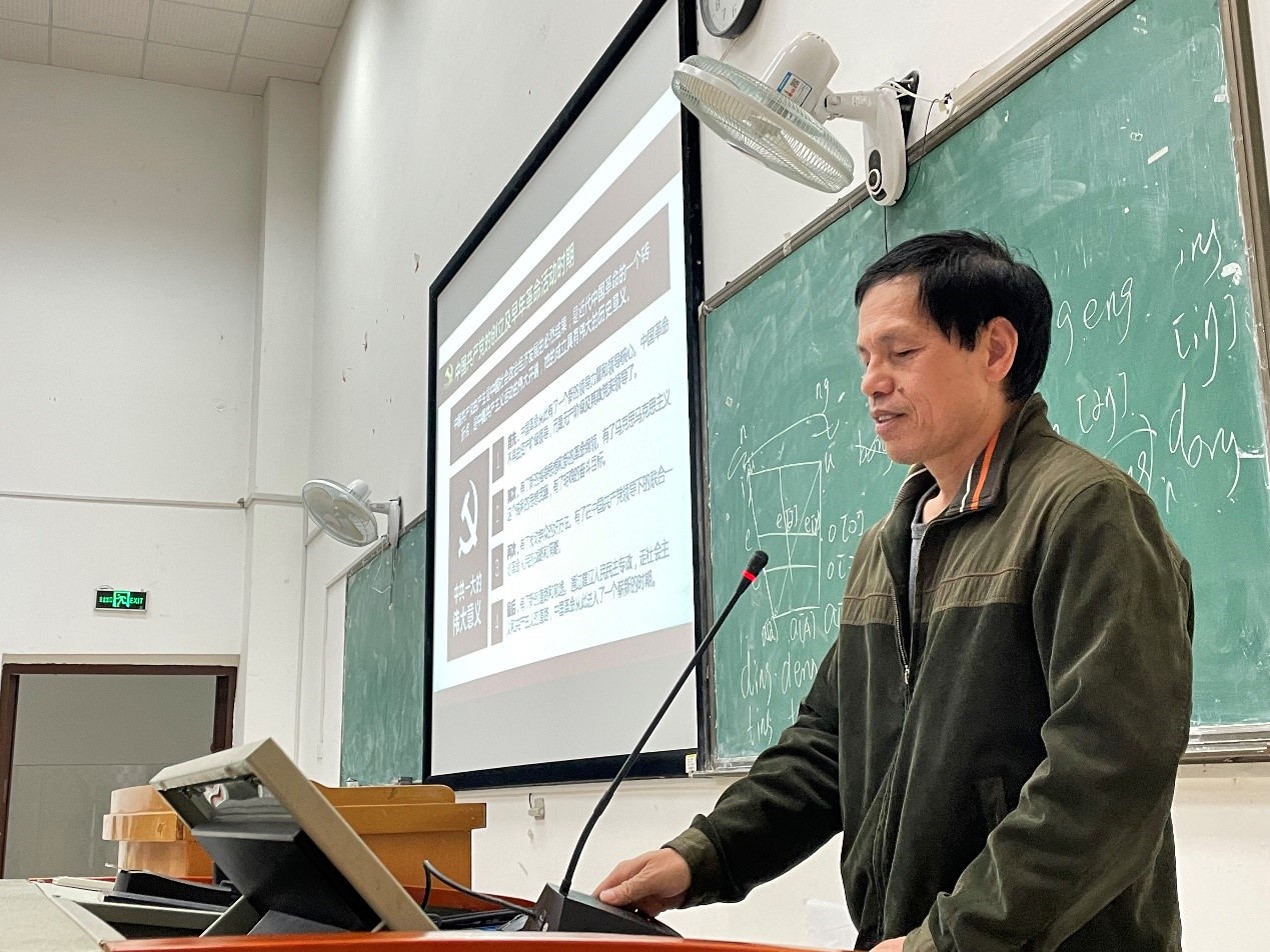 2021年10月25日晚19点30分,第64期入党积极分子培训班(五班)第七讲课在外语楼301教室举行。本次培训由物理与电子工程公司党总支书记陈溪辉书记主讲,主讲内容为:学习光辉党史,沿着中国特色社会主义道路前进。