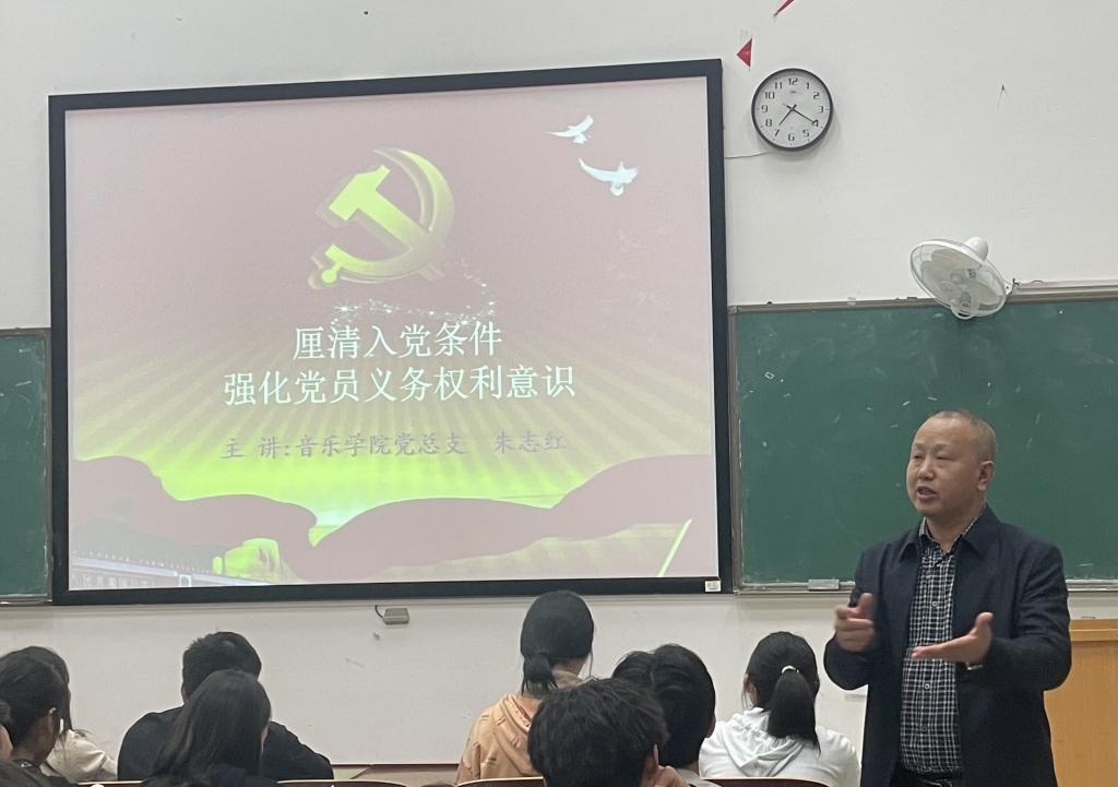 2021年10月26日19点,第64期入党积极分子培训班(五班)第八讲课在外语楼301教室举行。本次培训由音乐公司党总支书记朱志红书记主讲,主讲内容为:厘清入党条件,端正入党动机,以实际行动争取早日入党。
