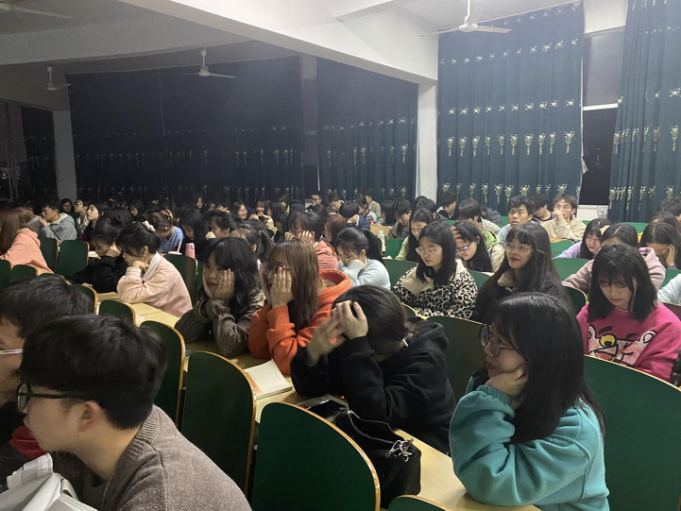 同学们正在认真观影