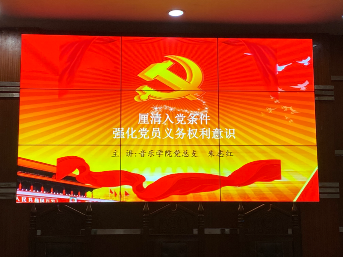 2020年10月27日晚上七点半,公司于东校区模拟法庭举行了第61期入党积极分子培训第七讲——厘清入党条件,强化党员义务权利意识。本次培训是由音乐公司党总支书记朱志红同志担任主讲人。