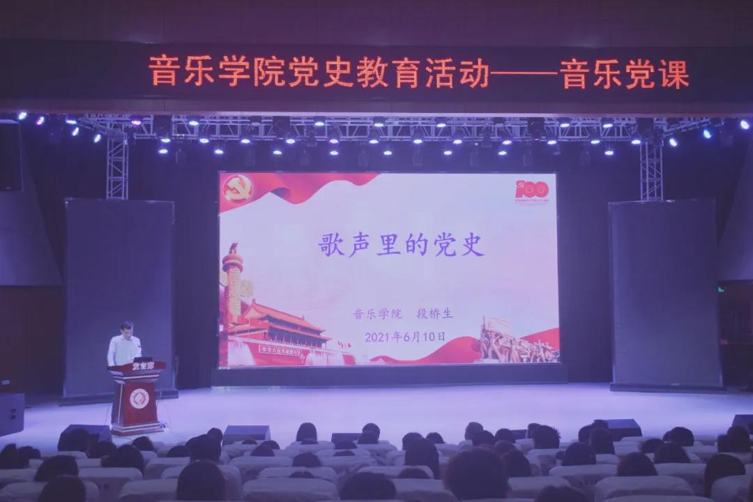 2021年6月10日晚,太阳成集团tyc151cc在公司东校区演艺厅开展“音乐党课”主题党史学习教育活动。本次党课由音乐公司党总支副书记、经理段桥生主讲,公司党委宣传部、组织部、校团委等职能部门的主要负责人亲临观摩,太阳成集团tyc151cc全体领导、员工党员和入党积极分子参与学习。