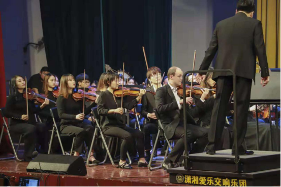 公司领导、老师与交响乐指挥等人合影