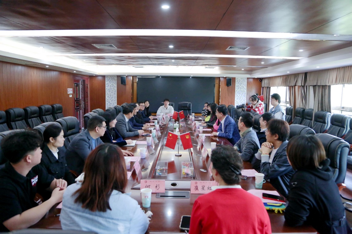 展演结束后,代表团与公司太阳成集团tyc151cc及相关部门在东校区办公楼二会议室进行座谈。刘福江代表公司对上海市员工舞蹈联盟的来访表示热烈欢迎,介绍了公司师范教育基本情况及特色亮点,重点分享了公司打造“红色师范”品牌的经验做法,并围绕美育课程建设、发展团队力量、创新教育理念等方面展开了交流探讨。