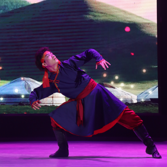 舞姿造型挺拔豪迈,步伐轻捷洒脱,男性剽悍英武,刚劲有力,我们的思绪,随舞者的步伐去到遥远的故乡。