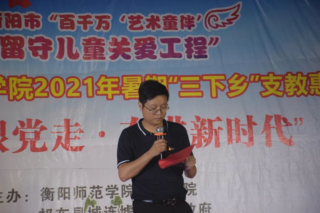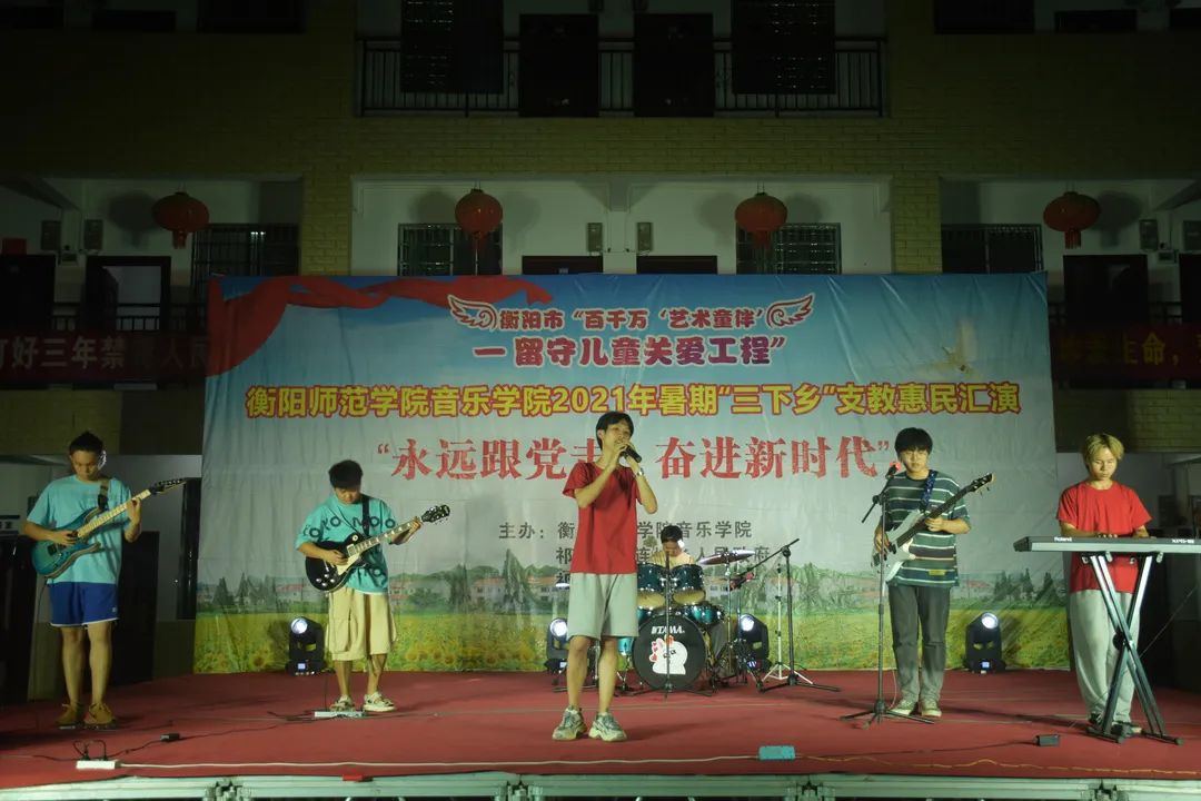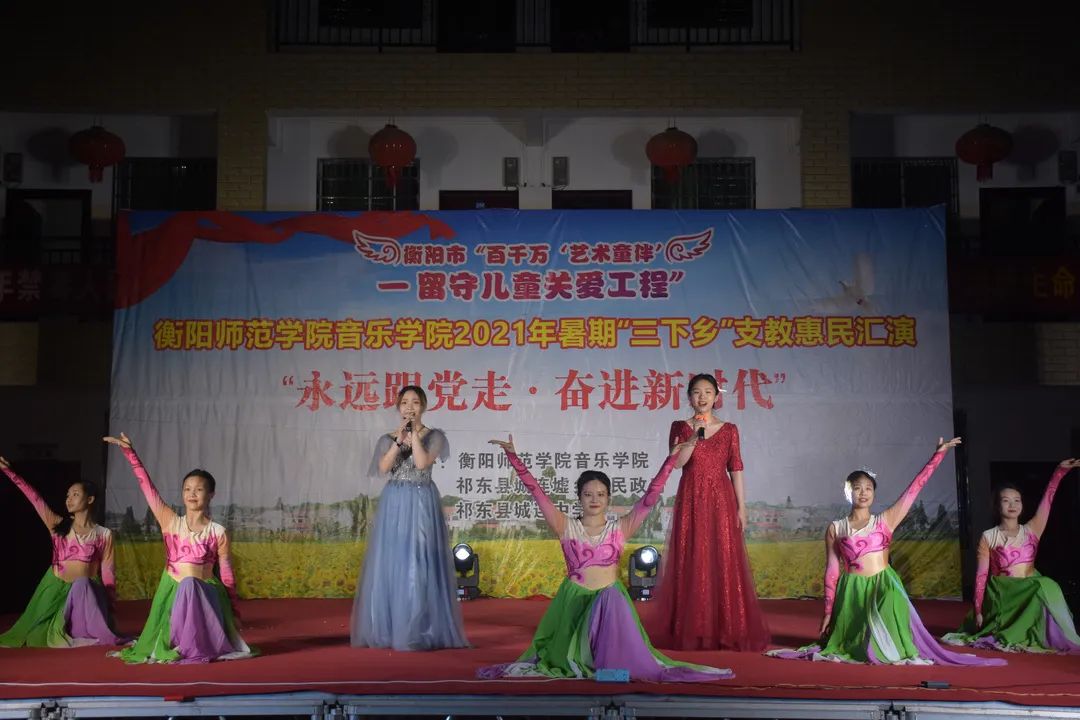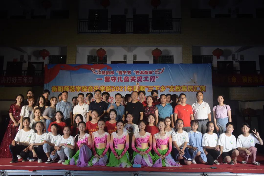 2021年7月12日晚,太阳成集团tyc151cc三下乡支教惠民汇演于城连墟乡隆重举行。莅临本场汇演的领导嘉宾有衡阳师院音乐公司党总支书记朱志红、党总支副书记陈雅斐。祁东县委宣传部一级主任科员周建桥、祁东县城连墟乡党委书记胡文波、祁东县城连墟乡乡长罗映、祁东县教育局青少年员工校外活动中心负责人周斐、祁东县城连墟乡党委副书记陈志红、祁东县城连墟乡人大主席周盛红 、祁东县城连墟乡教管办主任李仁秋。