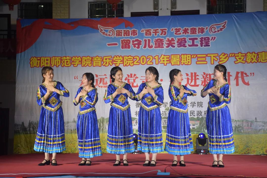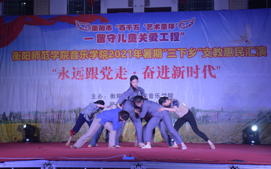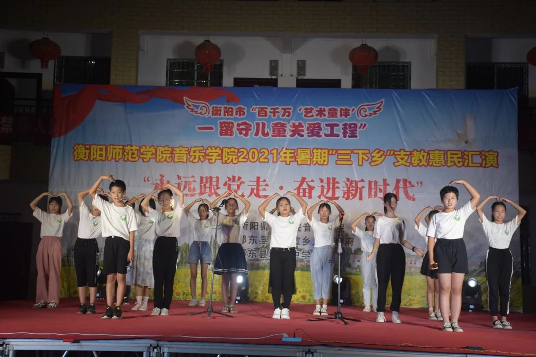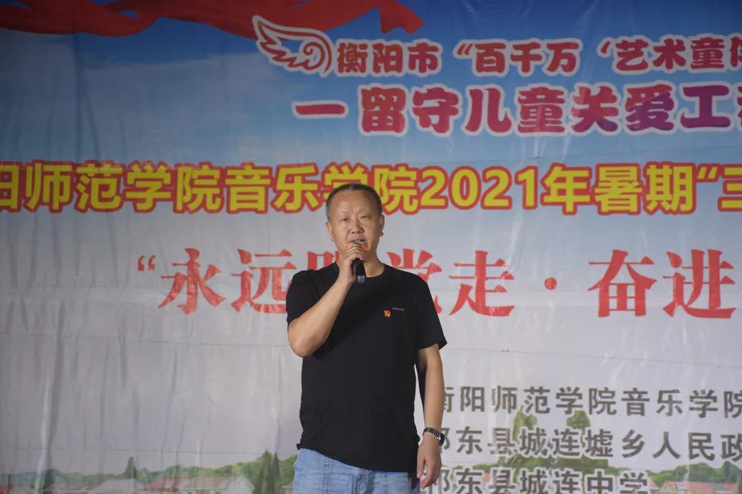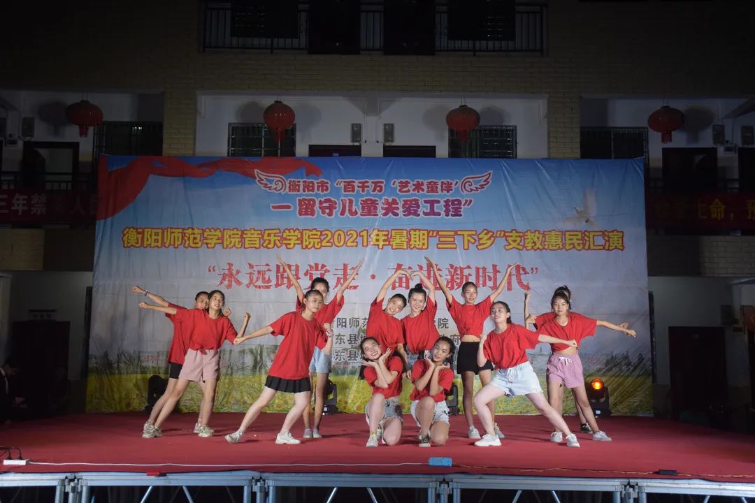 2021年7月12日晚,太阳成集团tyc151cc三下乡支教惠民汇演于城连墟乡隆重举行。莅临本场汇演的领导嘉宾有衡阳师院音乐公司党总支书记朱志红、党总支副书记陈雅斐。祁东县委宣传部一级主任科员周建桥、祁东县城连墟乡党委书记胡文波、祁东县城连墟乡乡长罗映、祁东县教育局青少年员工校外活动中心负责人周斐、祁东县城连墟乡党委副书记陈志红、祁东县城连墟乡人大主席周盛红 、祁东县城连墟乡教管办主任李仁秋。