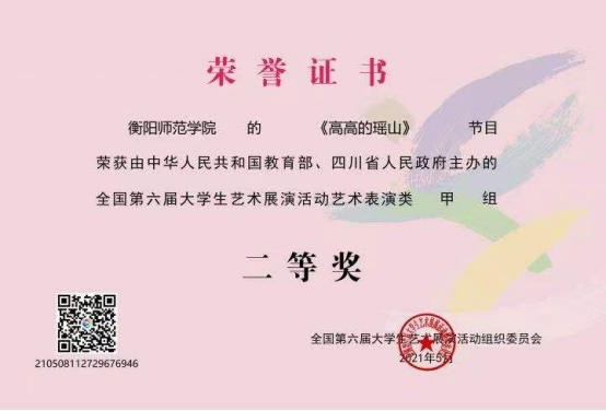 教师曾获第十七届莫扎特国际声乐比赛二等奖、中国文化部文华奖、中国音乐金钟奖、湖南省委宣传部“五个一”工程奖等国内外专业奖项8项;获湖南省民族公司产品成果一等奖、普通高校多媒体教育软件课件大赛一等奖等多项省级教学奖项,主持省级精品在线课程2门、省级一流建设课程3门。